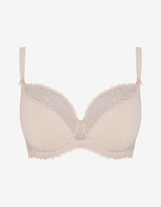 Це зручний бюстгальтер класичного крою, який ніжно формує, збирає і підтримує груди. Він ідеально підходить для щоденного використання, навіть при великому розмірі грудей, який потребує стійкої підтримки та підняття. Цей бюстгальтер чудово підкреслює форму бюсту під блузками та сорочками з глибоким вирізом, надаючи акцент на груди та створюючи повніший вигляд.