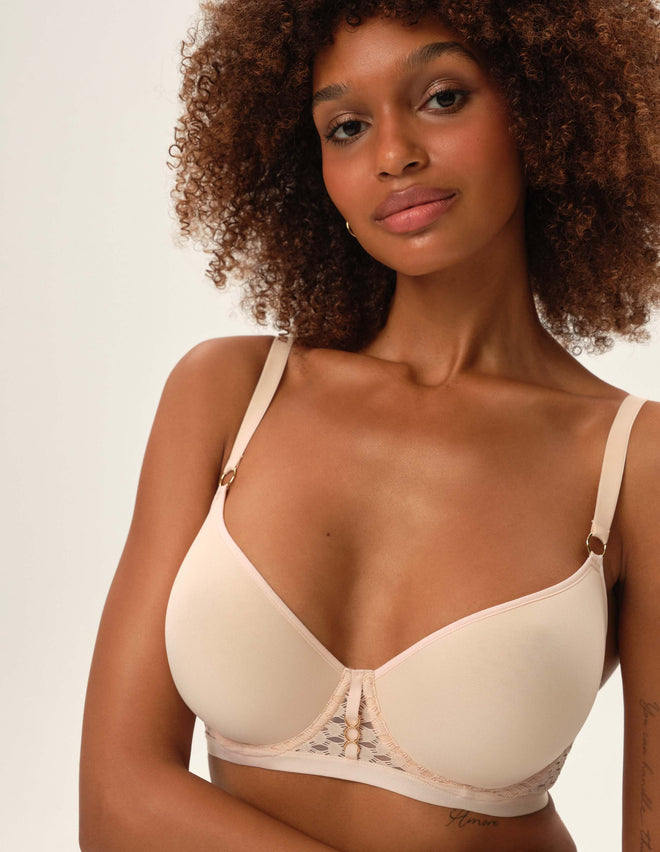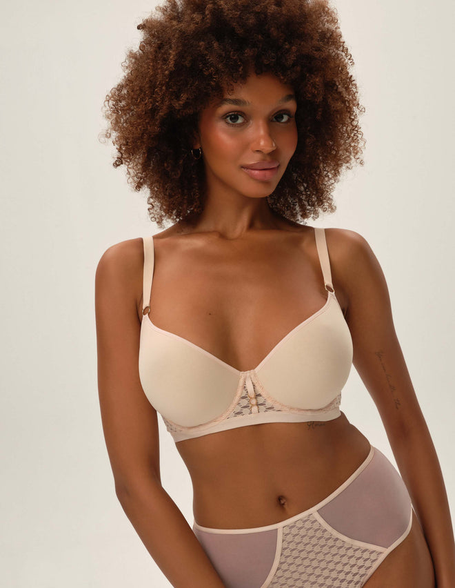 Відчуйте справжній комфорт з м'яким ущільненим бюстгальтером Ohara. Ця модель ніжно облягає тіло, як друга шкіра, тому її не буде видно навіть під дуже обтислим одягом, забезпечуючи бездоганний силует. Щоб додати особливого шарму до класичного крою, бежевий бюстгальтер прикрашений елегантним декоративним візерунком, що робить його не тільки практичним, а й вишуканим вибором для кожного дня.