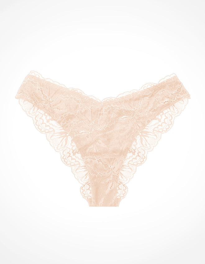 Пастельні бразильські трусики Icon зачаровують ноткою ніжної елегантності. Ця стильна модель виконана з квіткового мережива, вигадливо вкрапленого золотистою ниткою, що гарно підкреслює відтінок шкіри. Задня частина ледь помітно прозора, а спереду акуратний виріз. Поєднуйте наші нюдові мереживні бразиліани з бюстгальтером Icon і відчуйте себе іконою моди!