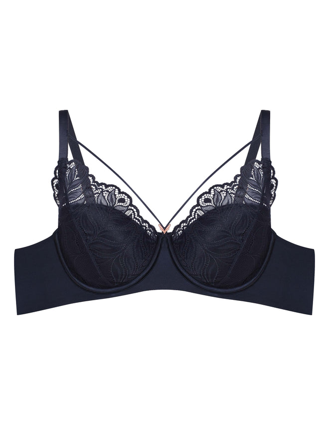 Ущільнений бюстгальтер Korin у темно-сірому кольорі — витончений вибір, який майстерно поєднує розкішне мереживо та атлас. Цей елегантний бюстгальтер забезпечує ідеальну підтримку та форму грудей. Особливу увагу привертають чуттєві декоративні мотузки в зоні декольте, доповнені стильною золотою фурнітурою, що додає образу вишуканості та шарму.