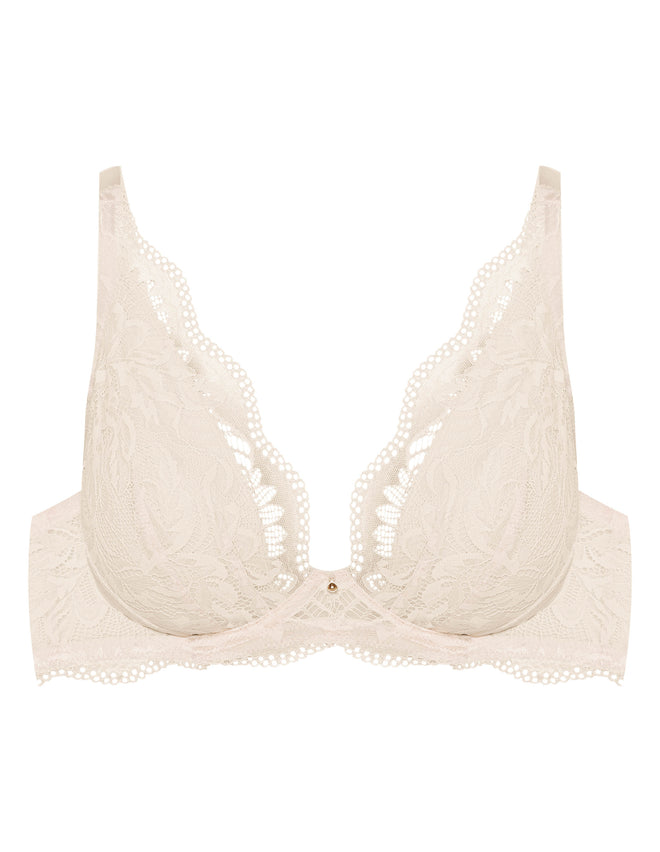 Дозвольте нам подбати про вашу красу та комфорт. Ідеальна пропозиція для власниць пишних форм – м'який бюстгальтер Kavi. Його витончене двоколірне мереживо з легким мерехтливим краєм плавно піднімається вгору, створюючи ніжний та елегантний образ.