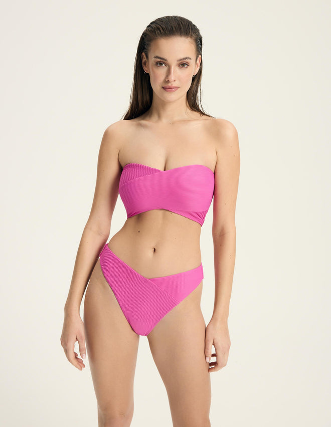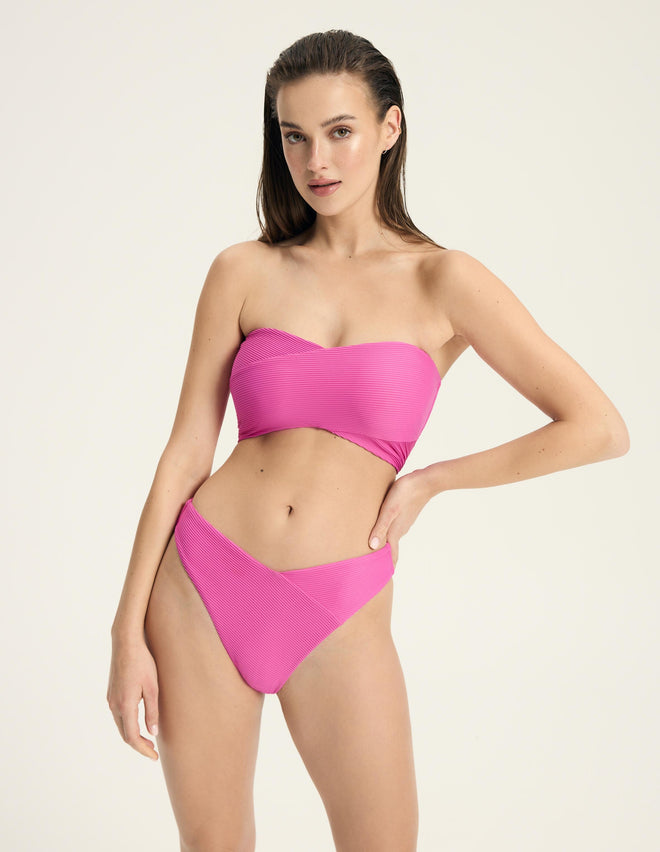 Цей рожевий бандо-ліф - ідеальний вибір для тих, хто цінує стиль, свободу руху та рівномірну засмагу. Завдяки м’якій фактурній тканині та безшовному крою він виглядає сучасно та елегантно, залишаючись максимально зручним. Підтримка без кісточок - для легкості, яку ти відчуєш одразу.
