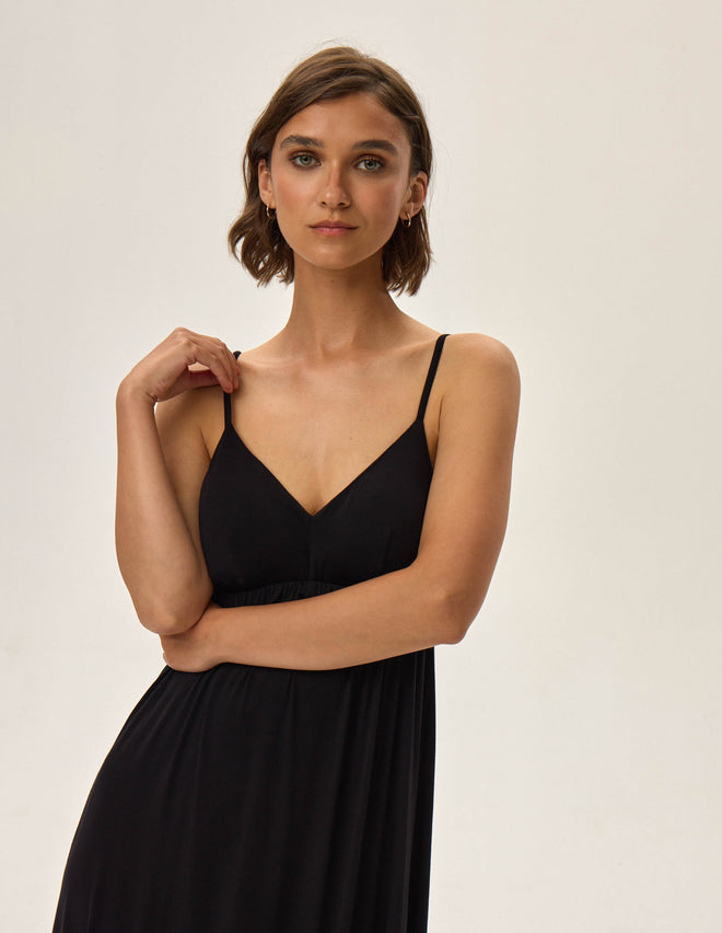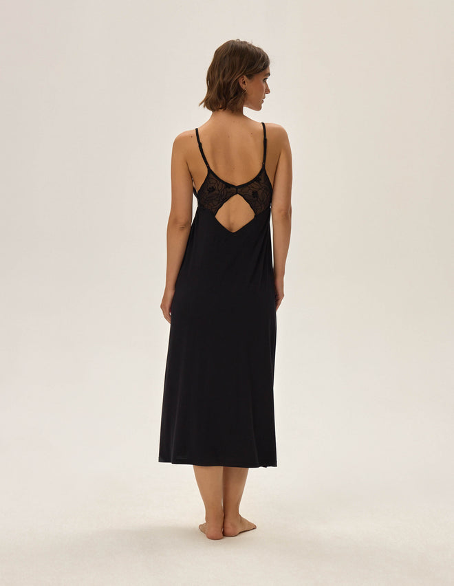 Нічна сорочка Jewell, виготовлена з легкої віскози, забезпечить вам максимальний комфорт протягом ночі. Регульовані бретельки дозволяють ідеально підлаштувати посадку, а м'які підкладки в чашечках додають додаткової зручності та підтримки. Класичний чорний колір, витончений крій та елегантний виріз на спинці, прикрашений ніжним сітчастим мереживом, надають сорочці не тільки неймовірного комфорту, але й вишуканого стилю. Ідеальний вибір для тих, хто прагне поєднання естетики та зручності.