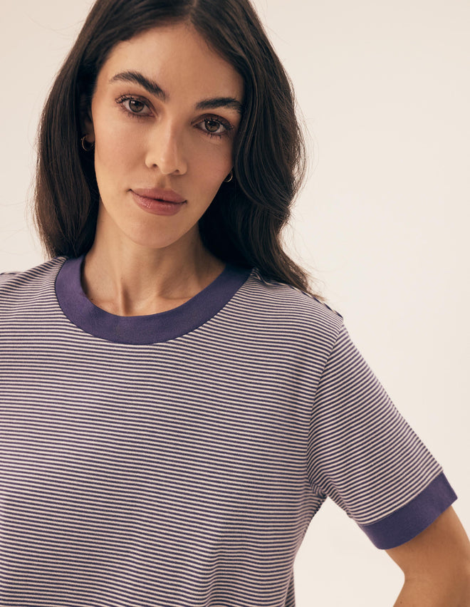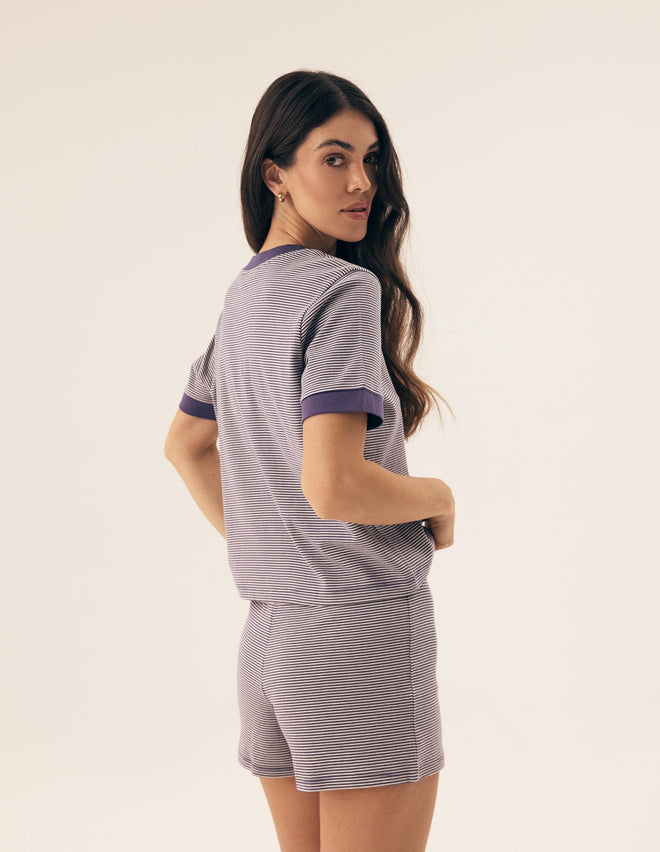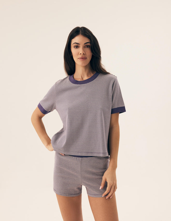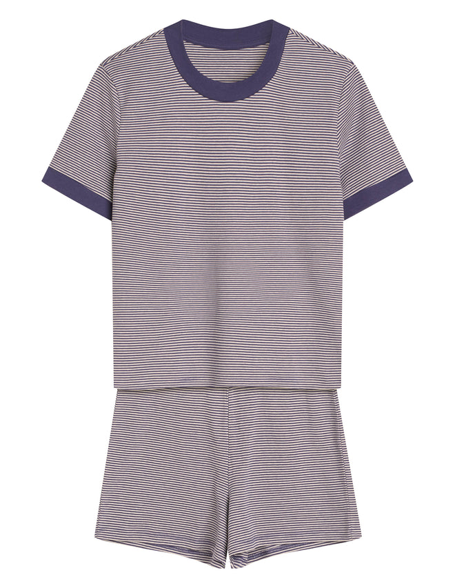 Легка піжама з м'якого бавовняного трикотажу Reese. Класичний комплект: футболка з коротким рукавом та шорти з еластичним поясом. Контрастні манжети додають акценту. Ідеальна для домашнього відпочинку та спокійного сну.