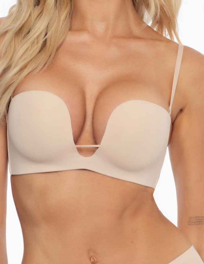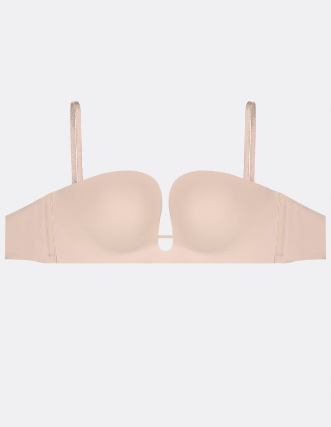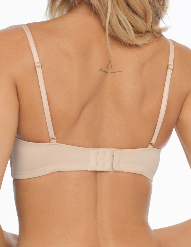 Бюстгальтер Novelty - це ідеальна базова модель. Він надійно збирає та піднімає груди, створюючи ідеальну форму. Виготовлений з гладенького матеріалу бежевого кольору, він залишається непомітним навіть під приталеним одягом. Зручні бретелі, що відстібаються, дають змогу носити його з блузками або сукнями з відкритими плечима. Перемичка прикрашена тонкою та витонченою стрічкою, що надає моделі особливої вишуканості.