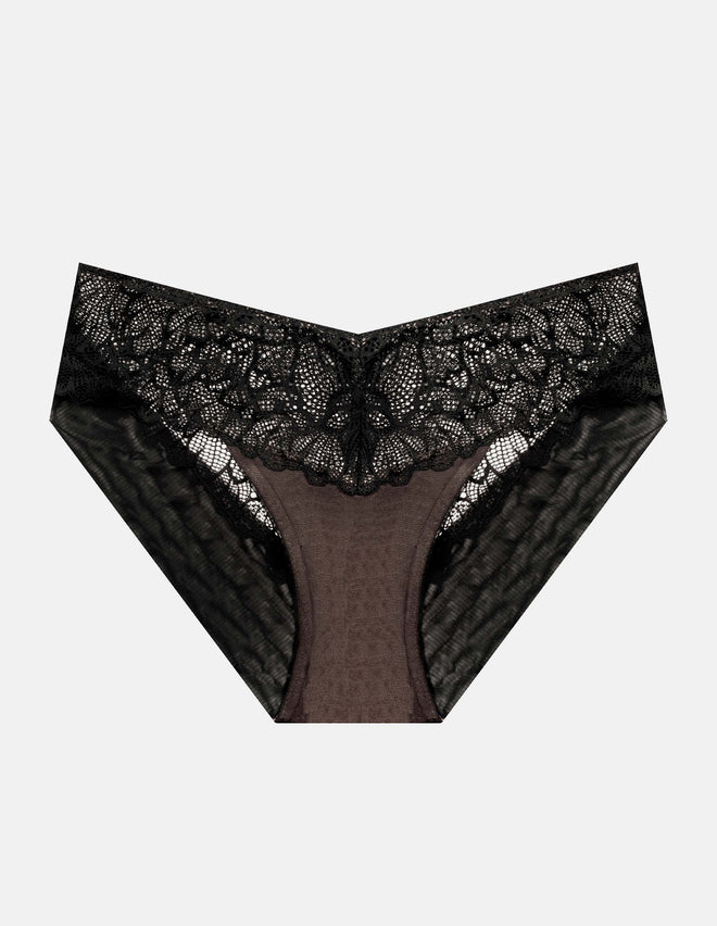 Жіночі труси Ivette - оригінальна модель білизни, яка сподобається прихильницям незвичайного дизайну. Поєднання прозорої сітки та мережива з анімалістичним принтом створює сміливий, сучасний ефект. Класичний крій бікіні також розбитий V-подібною обробкою на талії, яка м'яко стрункішою силует. Завдяки бавовняній підкладці ваша ніжна шкіра зможе дихати протягом усього дня.