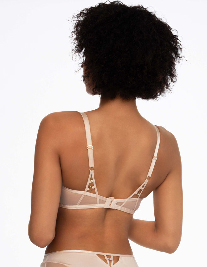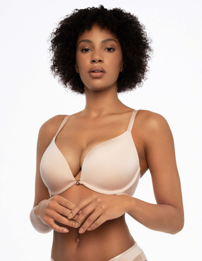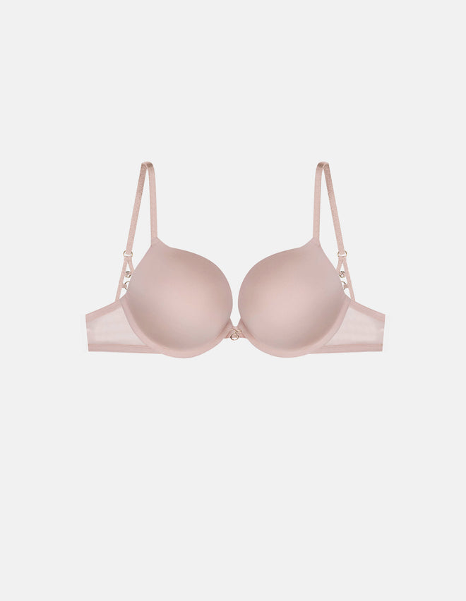 Бюстгальтер Nuts - це бежевий бюстгальтер з мінімалістичним дизайном, який приємно здивує вас. Він поєднує м'яку, приємну для шкіри тканину з ніжною сіткою на поясі. Абсолютно гладенькі чашечки, які не видно під одягом, створюють ефект пуш-ап, піднімаючи та округляючи груди.