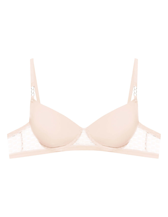 Коли мінімалізм поєднується з витонченим декором, результат не може залишити байдужим. Бюстгальтер Ohara у бежевому кольорі - підтверджує це. Гладенькі чашечки, які м'яко піднімають бюст, декоративні бретелі з витонченими кільцями, а також ніжна перемичка, прикрашена сіточкою з дрібним візерунком, надають моделі особливого шарму. Цей бюстгальтер стане справжньою перлиною вашої колекції!