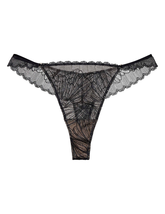Стрінги Oprah створені для того, щоб дарувати вам відчуття чуттєвості й впевненості в будь-якій ситуації. Виготовлені з вишуканого мережива, вони мають спокусливий вигляд, доповнений витонченими деталями: глибоким чорним кольором, ледь помітним блиском та тонкими еластичними стрічками з боків. Незважаючи на свій ефектний дизайн, стрінги залишаються неймовірно зручними завдяки м'якій бавовняній ластовиці та еластичному поясу, який не створює дискомфорту.