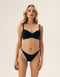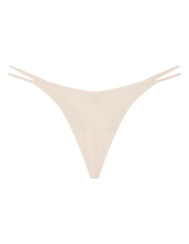 Stringi Bosco wykonane z poliamidu z klejonymi brzegami, po bokach podwójne gumeczki dekoracyjne. Ozdobione z tyłu drobnym akcesorium z logo Esotiq.