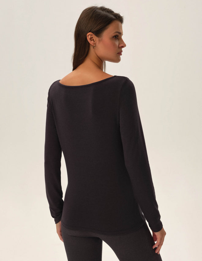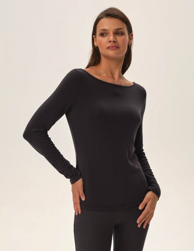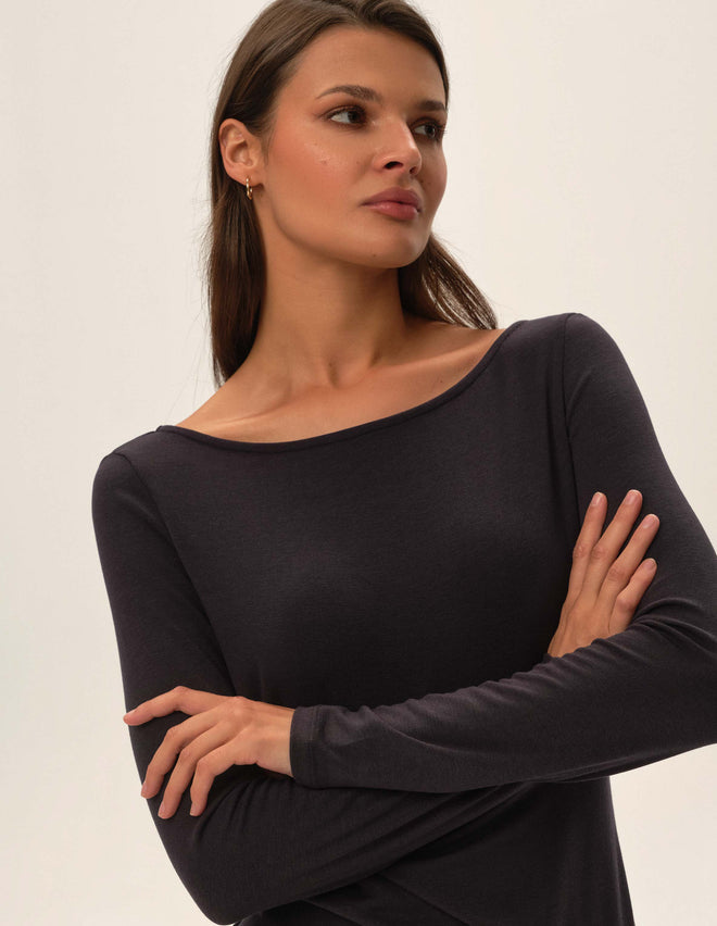 Лонгслів Jimena - це стильний базовий елемент, який додасть вашому гардеробу універсальності. Класичний крій та виріз човником роблять його елегантним вибором як для роботи, так і для неформальних зустрічей. Завдяки тонкому віскозному трикотажу, лонгслів приємно прилягає до тіла, підкреслюючи силует, але не обмежуючи рухів. Jimena чудово виглядає як самостійний топ із брюками чи спідницею, а також є ідеальною базою для багатошарових образів - надягніть його під джемпер або пальто, щоб створити стильний і затишний лук на будь-яку пору року.