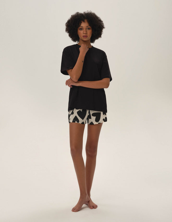 Не любите нудьгу в гардеробі та шукаєте щось оригінальне навіть для повсякденної піжами? Тоді двоколірна жіноча піжама Jeffie - саме для вас! Ця модель зачарує вас з першого погляду. Яскравий відтінок додає настрою, а вільні піжамні шорти та футболка-оверсайз забезпечують відчуття легкості й комфортний сон. Відкрийте для себе стильний та зручний варіант, який додасть свіжості вашому домашньому образу.