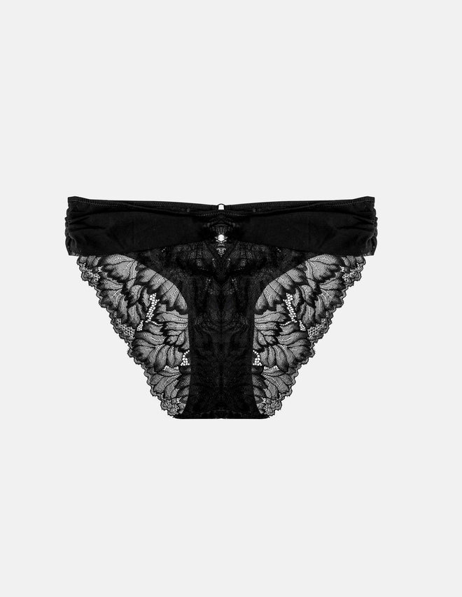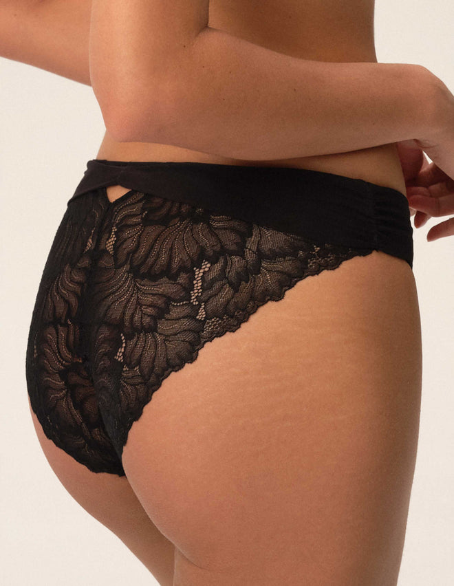Neo - це модель, яка поєднує ніжність та комфорт. Вона безумовно привертає увагу завдяки мереживу у квітковому стилі та декоративній гофрованій сітці навколо талії. Особливу увагу заслуговує невеликий, але інтригуючий трикутний виріз та золотий обруч спереду.